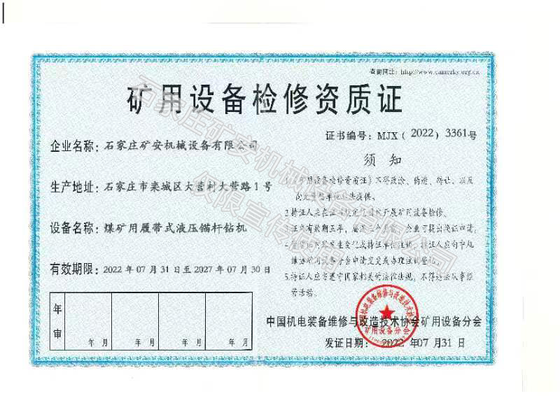 石家莊礦安機械設備有限公司成立于2011年3月,公司位于風景優(yōu)美、科技發(fā)達、交通便利的石家莊市欒城區(qū),是一家專注生產煤礦井下支護機具(錨桿鉆機)和安全鉆機(防突,架柱等)及氣動隔膜泵等礦用機械設備的********,是國內煤礦機械裝備的生產商和服務商,根據(jù)用戶需求提供井下適用的鉆機施工解決方案。公司致力于打造研發(fā)、制造、銷售、服務為一體的現(xiàn)代化企業(yè),全心全意為煤礦生產保駕護航。 ? 公司建有裝配車間、機加車間和調試車間,擁有嚴格的質量控制體系、先進的產品開發(fā)系統(tǒng)、完善的試驗檢測設施、良好的售后服務保障。先后與中煤科工集團沈陽研究院、西安研究院、太原理工大學、燕山大學等知名院校建立了緊密的合作關系。 ? 公司產品主要銷往山西、陜西、山東、內蒙古、黑龍江、云南、貴州等七十多個礦區(qū)和地方煤礦,擁有一支成熟的售后技術團隊,并且和中煤集團、華電煤業(yè)集團、華潤煤業(yè)集團、潞安集團、山西焦煤、淮北礦業(yè)等國內知名企業(yè)達成長期合作關系。 ? 公司始終秉持“讓煤礦生產更安全”的發(fā)展使命,力求誠信與創(chuàng)新,追求卓越與完美,深知“實實在在、心無旁騖做實業(yè)”,這才是本分!石家莊礦安機械設備有限公司愿與您攜手共進,共同發(fā)展!為客戶創(chuàng)造價值,提供優(yōu)質的產品和*佳的服務是我們永無止境的理念!